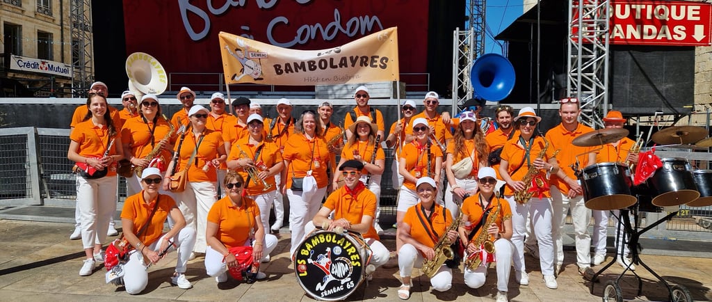 C'est à l'occasion des Fêtes du Padouens, quartier de Séméac, qu'une bande de copains apprentis musiciens décide de fonder la banda de Séméac. Nous sommes en 1981. On se répartit les rôles (plouf plouf toi tu joueras de la trompette), on cherche des partitions, on répète comme on peut et le jour J la magie opère! 4 morceaux au répertoire seulement mais le coup d'essai fait mouche. Le bus est lancé! Rien ne l'arrêtera pendant les 40 années qui vont suivre. 40 années au cours desquelles de très nombreux musiciens useront leurs lèvres sur le répertoire classique du folklore basquo-landais. 40 ans au cours desquels les initiateurs du projet surent intégrer des jeunes et des moins jeunes et fédérer leur envie de jouer et de faire la fête sous la banderole de la banda. 40 ans durant lesquels les tenues furent plus belles les unes que les autres ... salopette rouge et chemise à fleur, marinière, polo orange, polo bleu, pantalon blanc, blouson vert, blouson bleu ... 40 ans pour aboutir à un groupe orange et bleu, au répertoire aujourd'hui atypique par son attachement à ses morceaux traditionnels du Sud Ouest, d'Espagne, du Mexique et s'ouvrant à la variété grâce à l'impulsion des nouvelles générations. Un mélange d'âges, d'envies, d'origines, d'opinions ... un joyeux bordel, bref ... Los Bambolayres